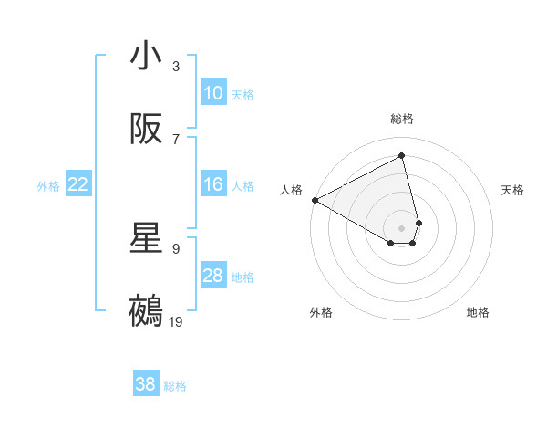 小阪 星鵺さんの総格は38画の4点!
