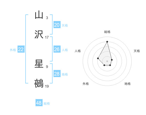 山沢 星鵺さんの総格は48画の4点!