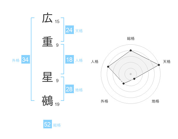 広重 星鵺さんの総格は52画の4点!