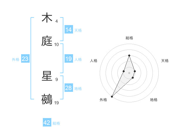木庭 星鵺さんの外格は23画の5点!