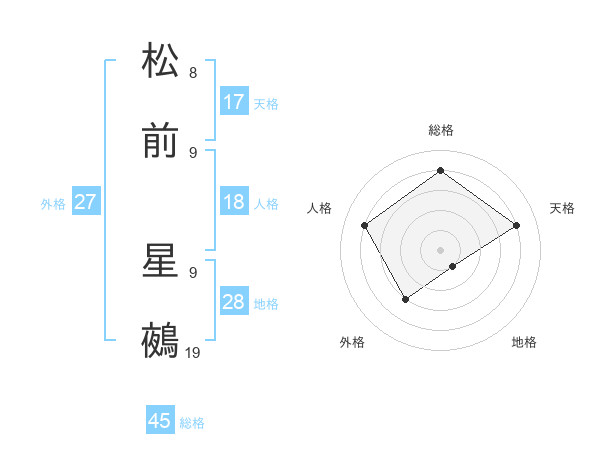 松前 星鵺さんを姓名の画数から五運を鑑定