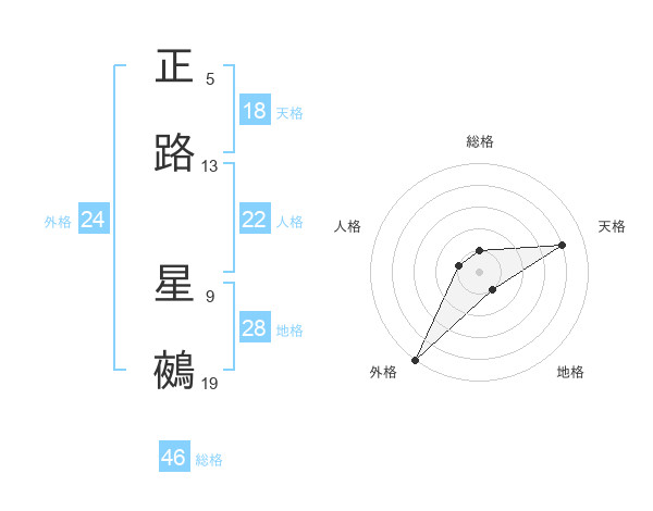 正路 星鵺さんを姓名の画数から五運を鑑定
