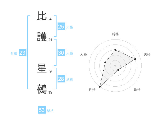 比護 星鵺さんの天格は25画の4点!