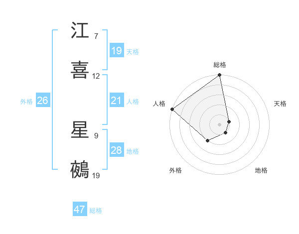 江喜 星鵺さんの総格は47画の5点!