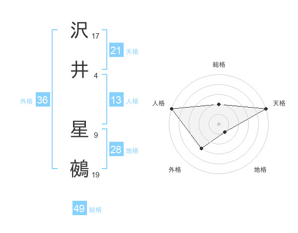 沢井 星鵺さんを姓名の画数から五運を鑑定