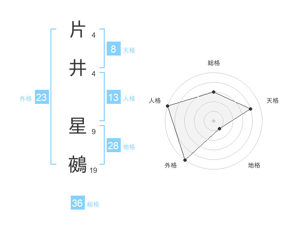 片井 星鵺さんを姓名の画数から五運を鑑定