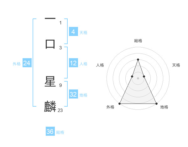 一口 星麟さんの外格は24画の5点!