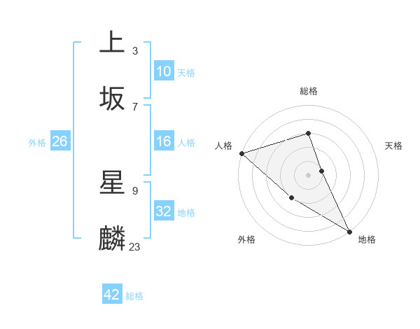 上坂 星麟さんを姓名の画数から五運を鑑定