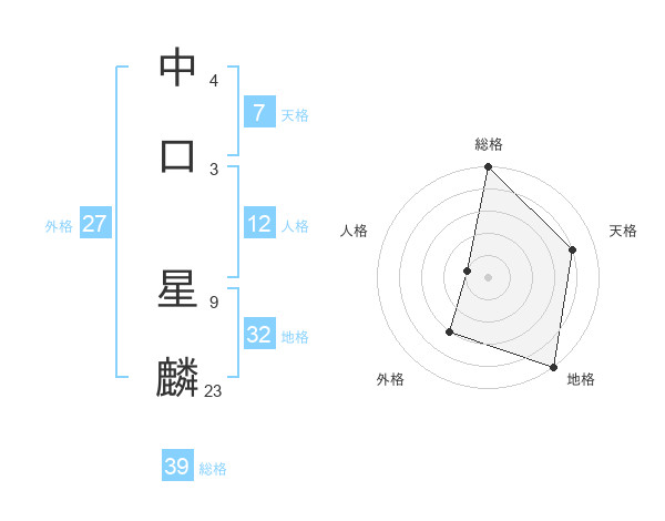 中口 星麟さんの総格は39画の5点!