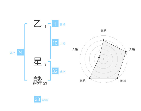 乙 星麟さんの総格は33画の4点!
