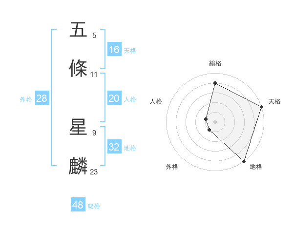 五條 星麟さんの地格は32画の5点!