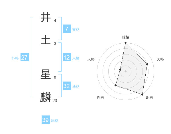 井土 星麟さんの総格は39画の5点!