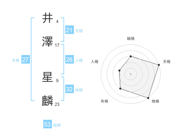 井澤 星麟さんを姓名の画数から五運を鑑定