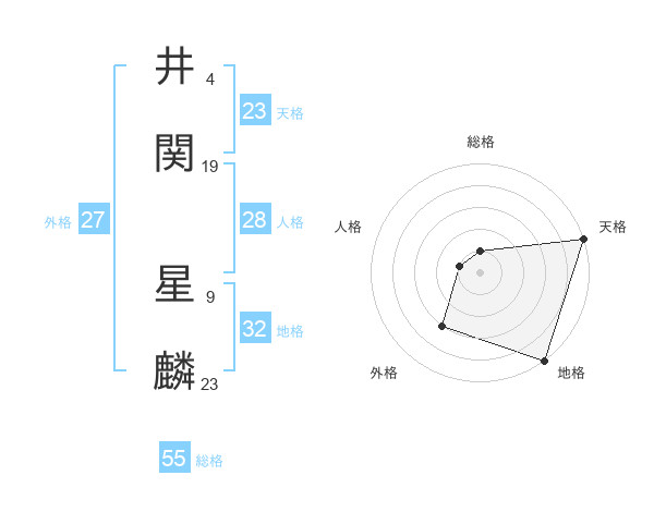 井関 星麟さんの天格は23画の5点!