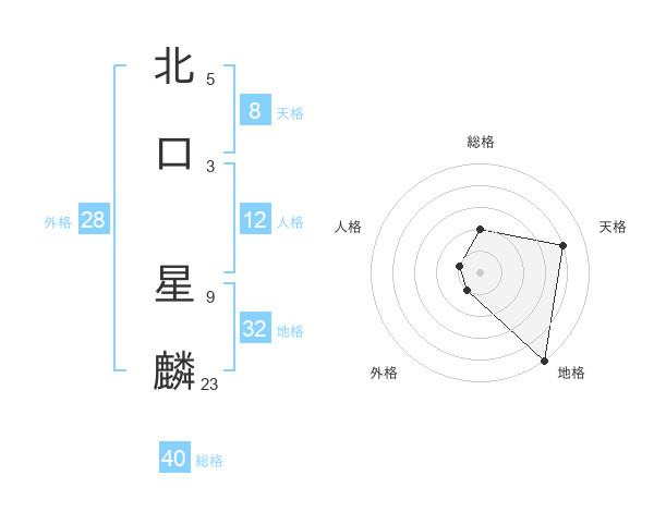 北口 星麟さんの天格は8画の4点!