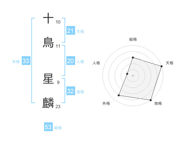 十鳥 星麟さんを姓名の画数から五運を鑑定