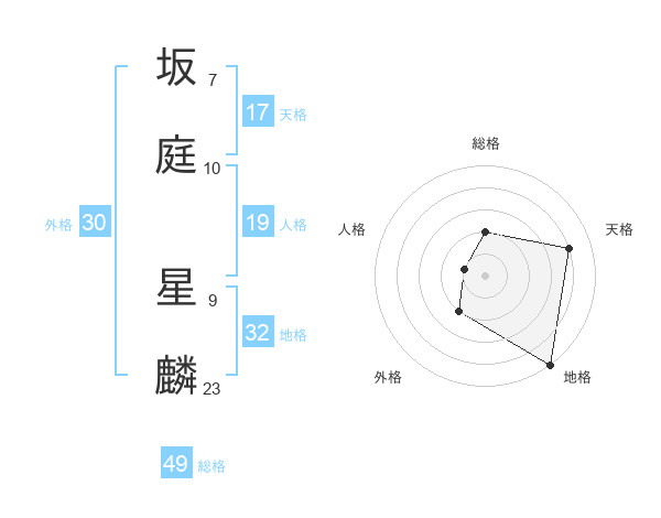 坂庭 星麟さんを姓名の画数から五運を鑑定