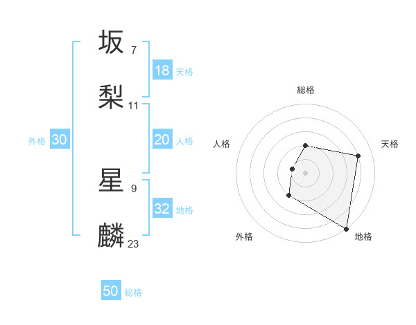 坂梨 星麟さんの総格は50画の2点!