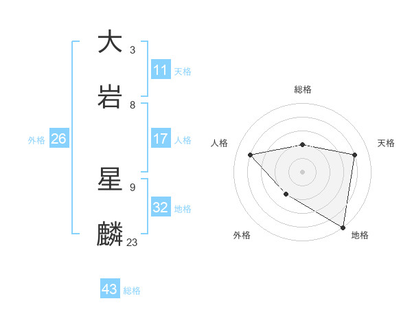 大岩 星麟さんを姓名の画数から五運を鑑定