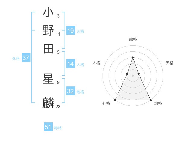 小野田 星麟さんの外格は37画の5点!