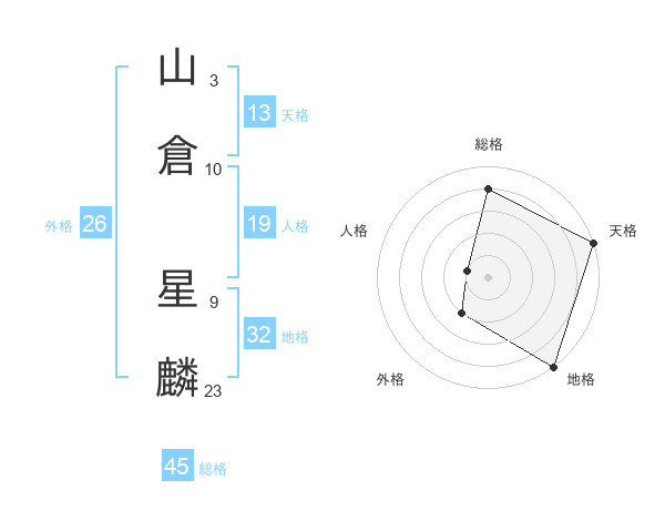 山倉 星麟さんの総格は45画の4点!