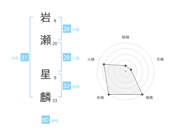 岩瀬 星麟さんを姓名の画数から五運を鑑定
