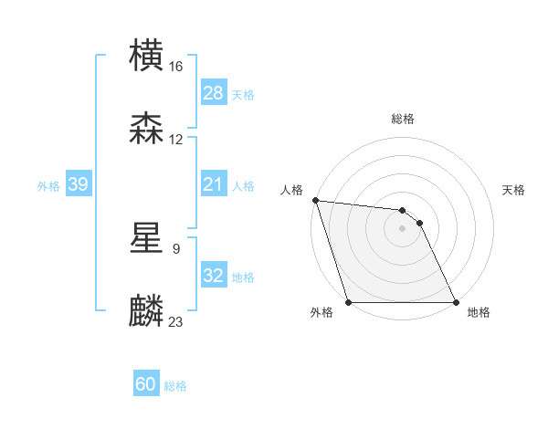 横森 星麟さんの外格は39画の5点!