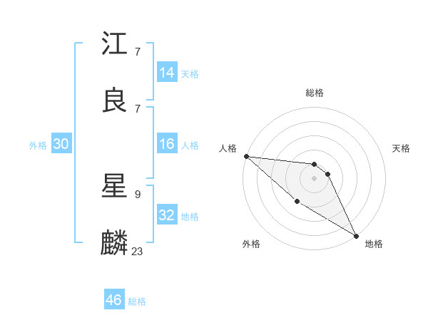 江良 星麟さんの総格は46画の1点!