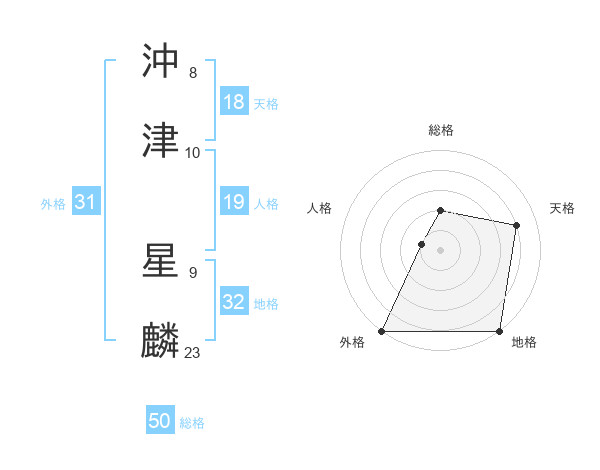 沖津 星麟さんの総格は50画の2点!