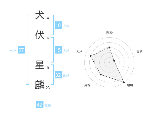 犬伏 星麟さんを姓名の画数から五運を鑑定