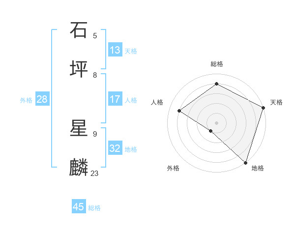 石坪 星麟さんの総格は45画の4点!