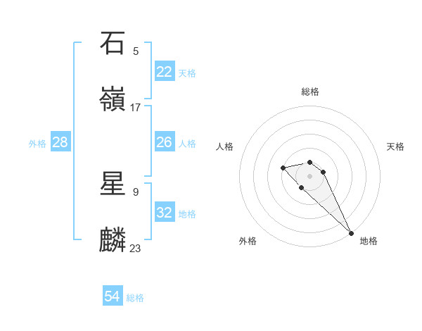 石嶺 星麟さんの総格は54画の1点!