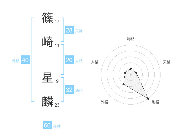 篠崎 星麟さんの総格は60画の1点!