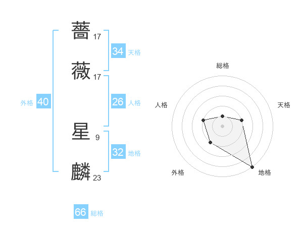 薔薇 星麟さんの総格は66画の1点!