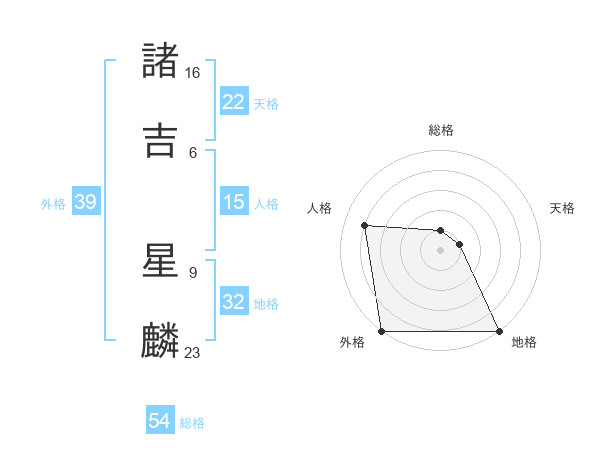 諸吉 星麟さんの外格は39画の5点!