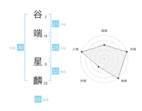 谷端 星麟さんの総格は53画の3点!