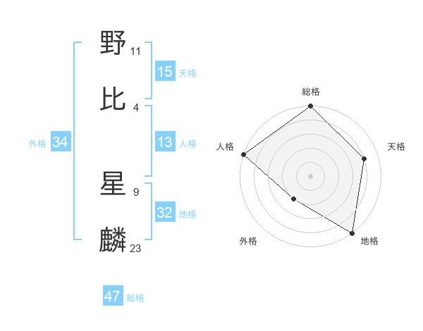 野比 星麟さんを姓名の画数から五運を鑑定