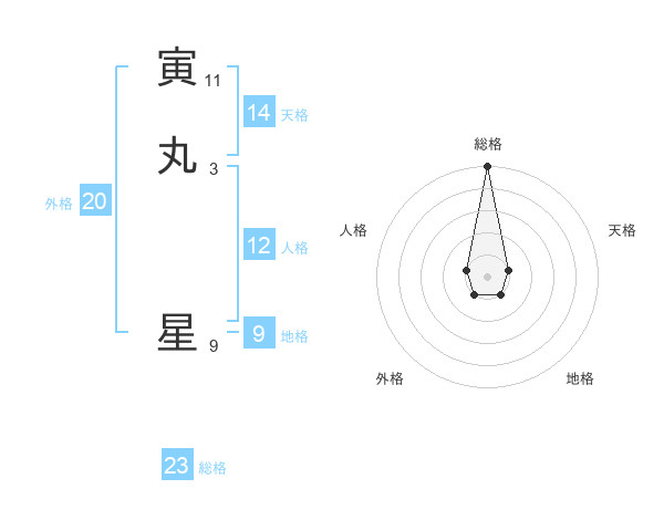寅丸 星さんの総格は23画の5点!