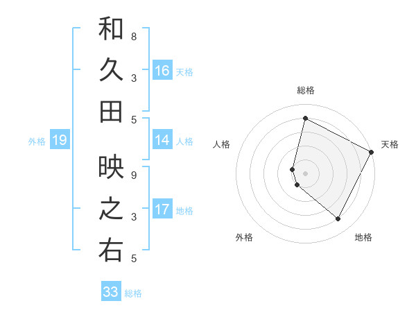 和久田 映之右さんを姓名の画数から五運を鑑定