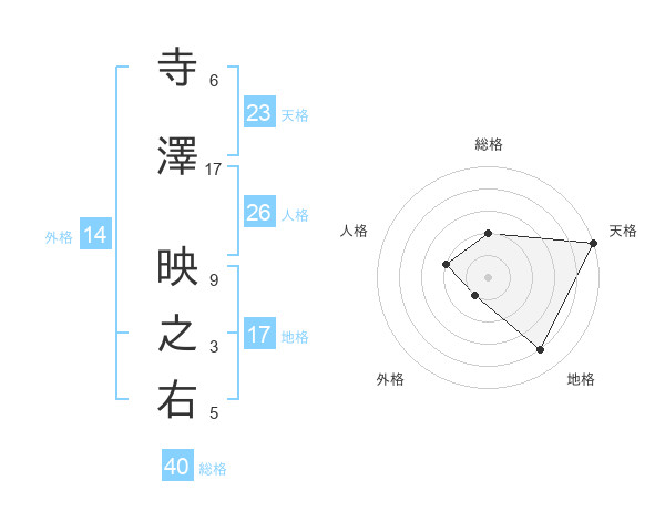 寺澤 映之右さんの総格は40画の2点!