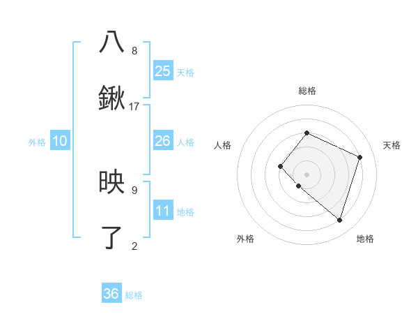 八鍬 映了さんの天格は25画の4点!