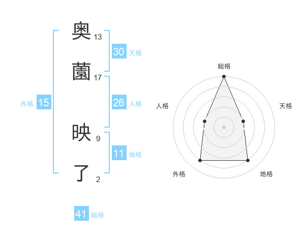 奥薗 映了さんを姓名の画数から五運を鑑定