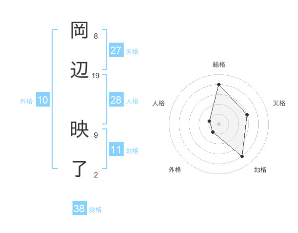 岡辺 映了さんの総格は38画の4点!