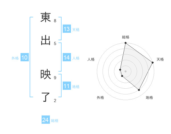 東出 映了さんの総格は24画の5点!