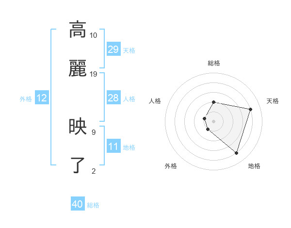 高麗 映了さんの総格は40画の2点!