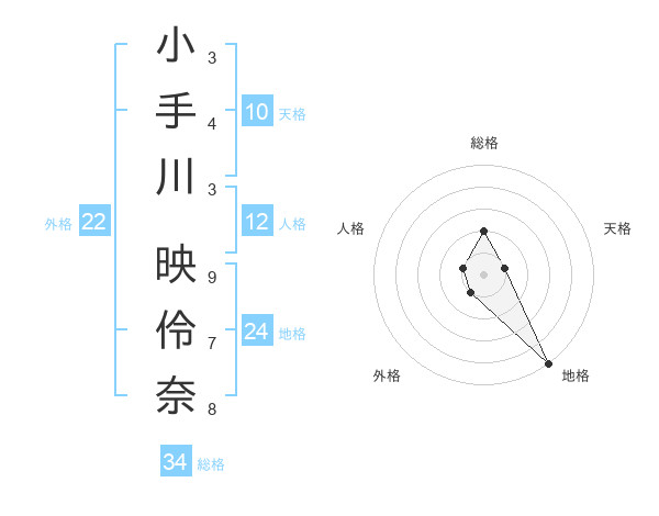 小手川 映伶奈さんを姓名の画数から五運を鑑定