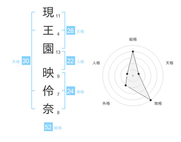 現王園 映伶奈さんを姓名の画数から五運を鑑定