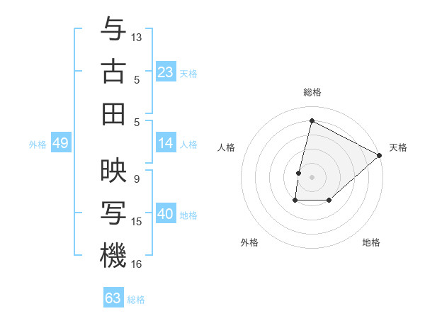 与古田 映写機さんを姓名の画数から五運を鑑定