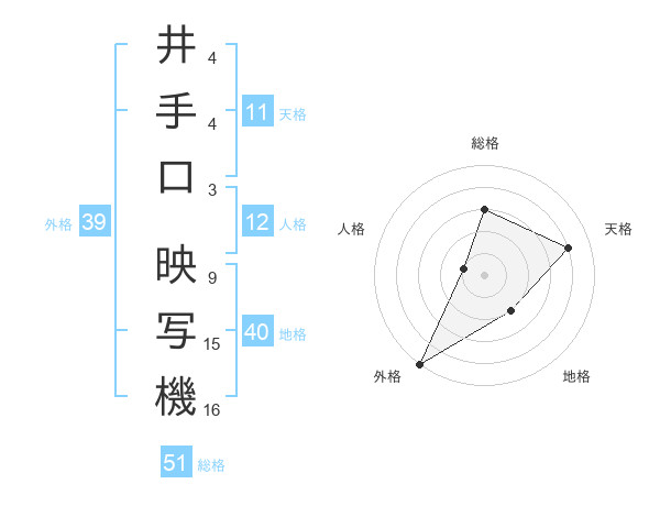 井手口 映写機さんを姓名の画数から五運を鑑定