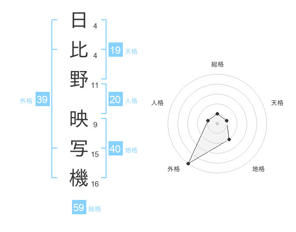日比野 映写機さんを姓名の画数から五運を鑑定